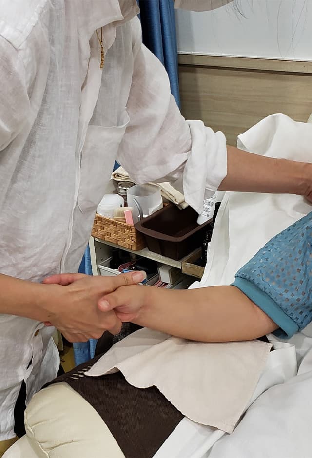 写真のように手足ケアを33年間しており、身体の歪み、痛みに悩まされてきました。